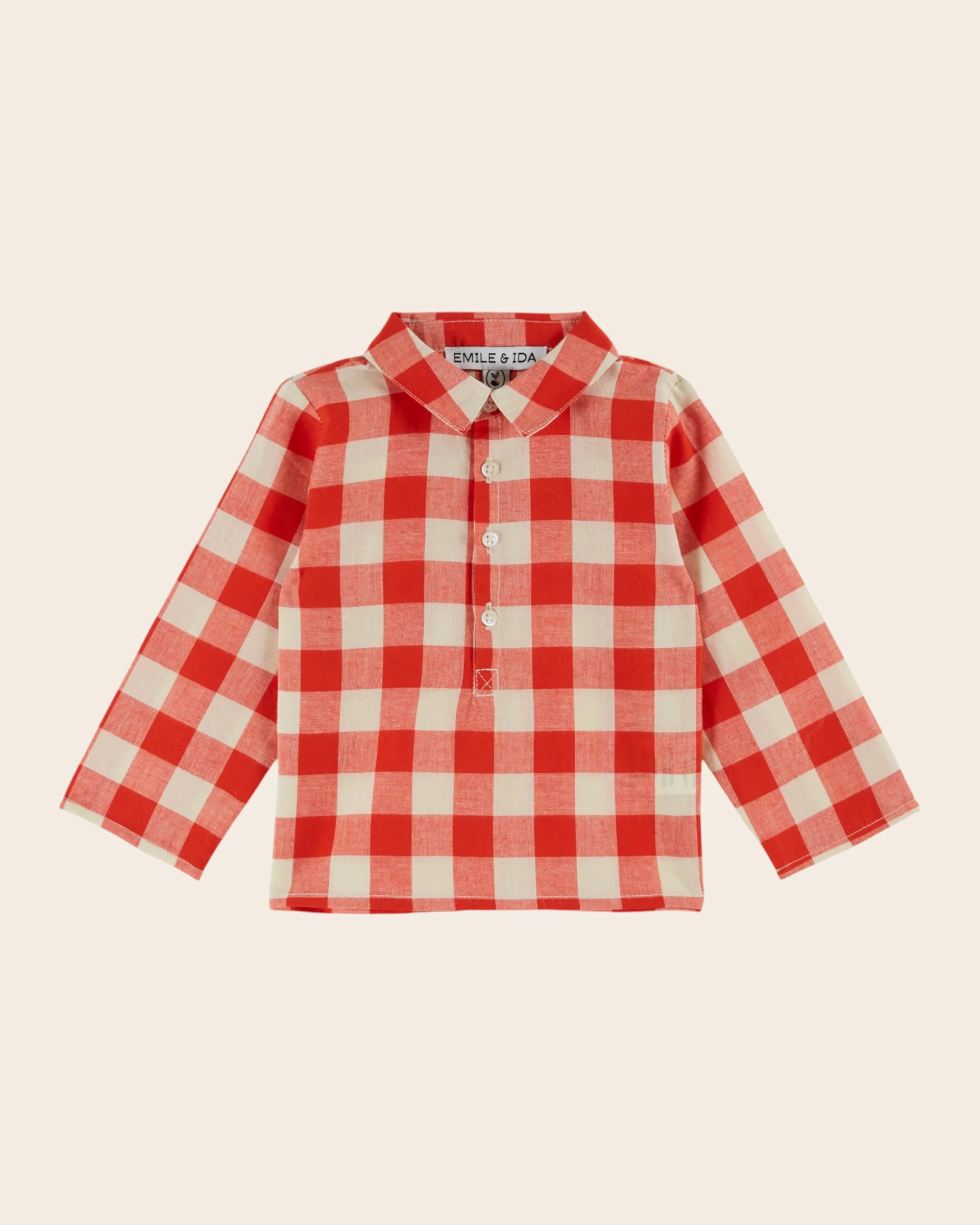 Kurta en coton biologique vichy à gros carreaux rouges et écrus.