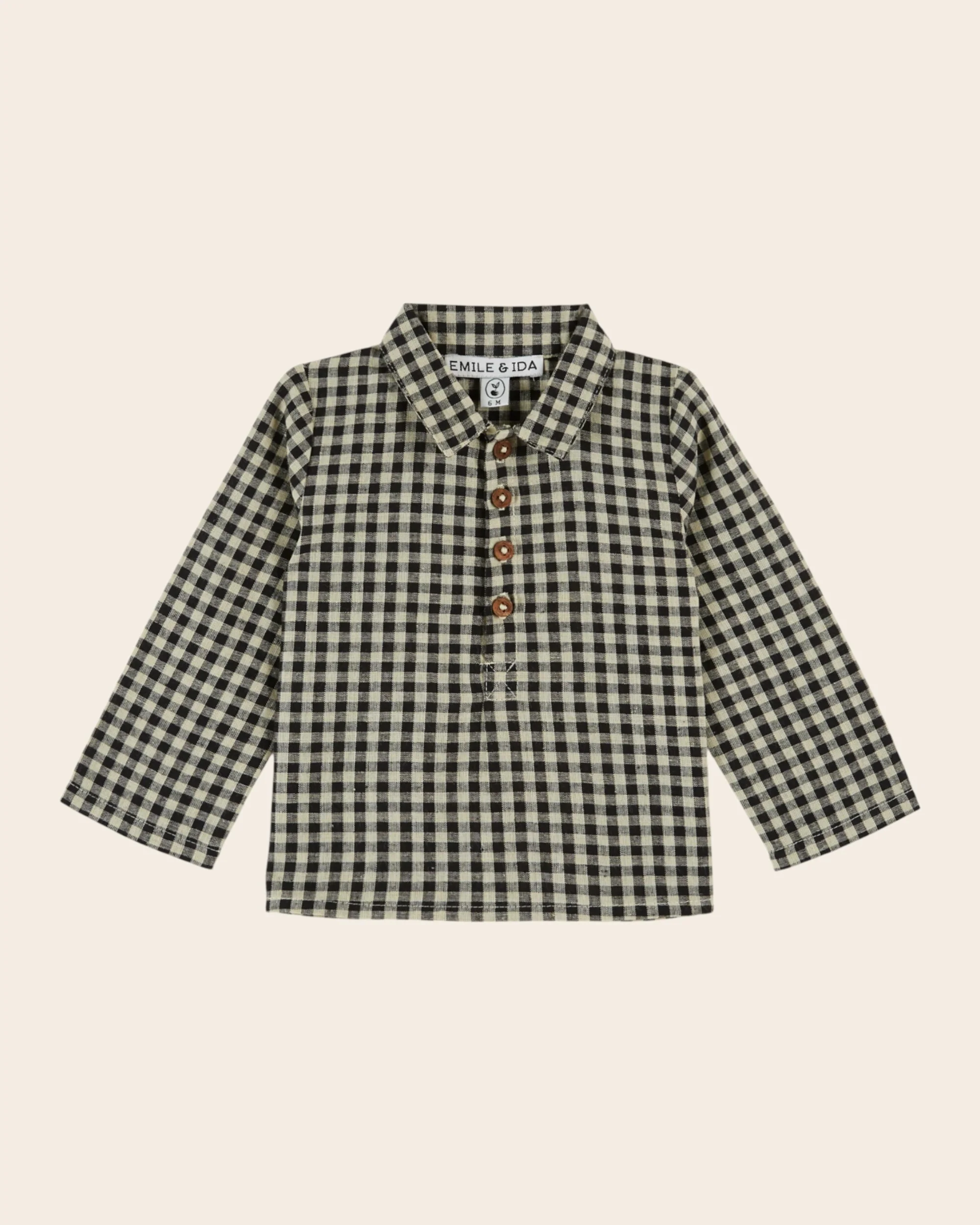 Kurta en mélange de coton et flex vichy à petits carreaux noirs et blancs.