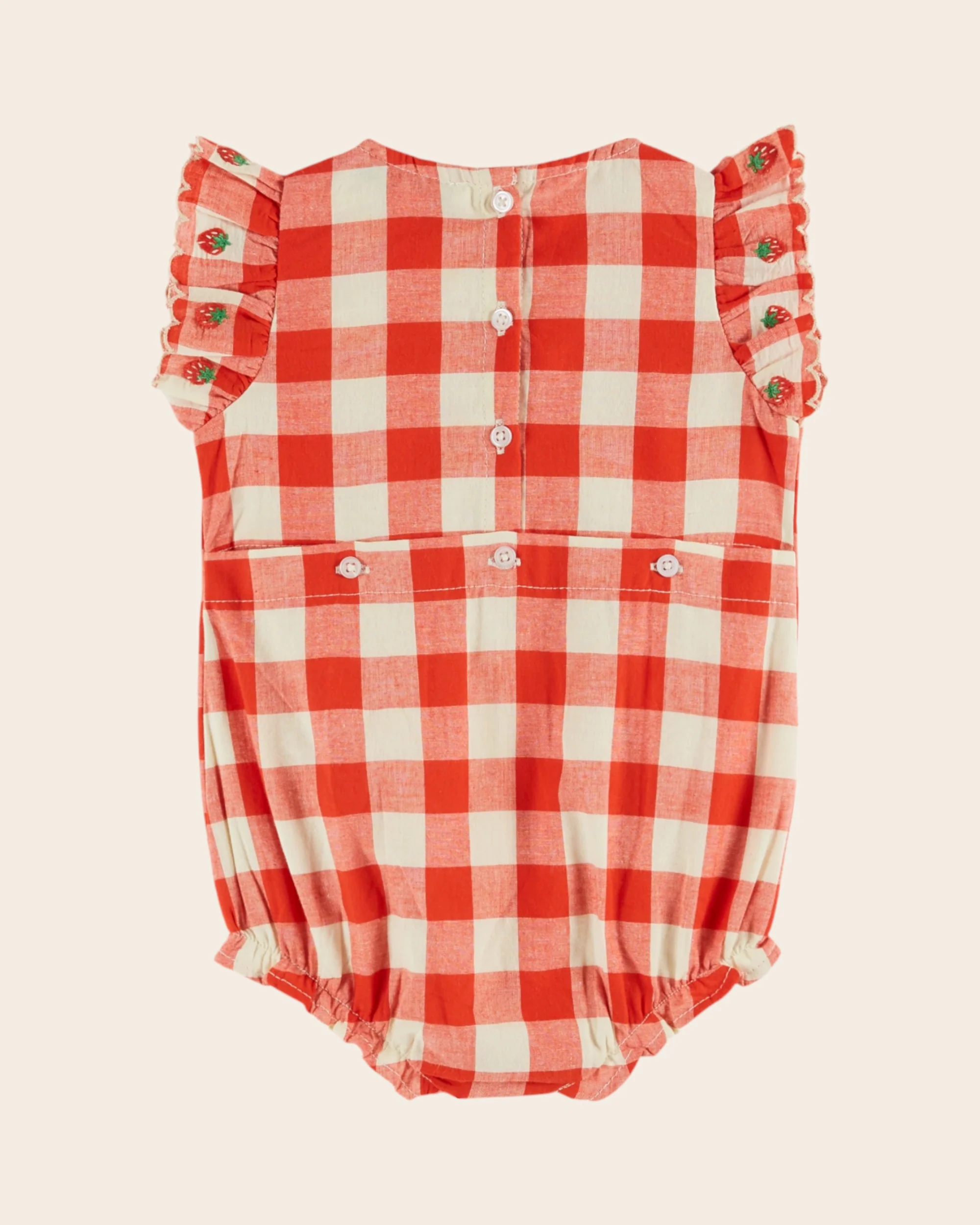 Combibloomer en coton biologique vichy à gros carreaux rouges et écrus.